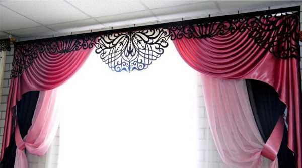 - Во-вторых, горизонтальную драпировку размещают исключительно на аверсе (поверх) шторной композиции.