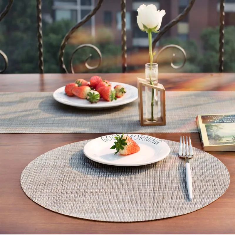 Важно! Для изготовления виниловых салфеток используется тканевая основа, потому по своим характеристикам они напоминают натуральный материал. Такие подстилки сохраняют лучшие свойства поливинилхлорида. Тканевые основы могут иметь различающуюся эффектную текстуру и плетение. Минусом винила можно считать выделение хлора при нагревании. Он издает неприятный запах и может нанести вред здоровью человека.