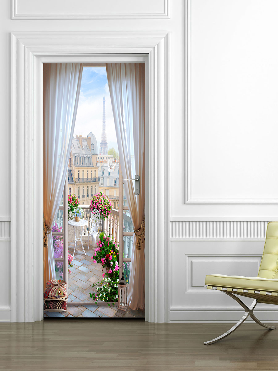 В строительных магазинах можно найти специальные фотообои, предназначенные для оклейки дверей и шкафов. Обычно это бумажные варианты, на которых изображены нетривиальные сюжеты, реже банальная имитация деревянного покрытия.