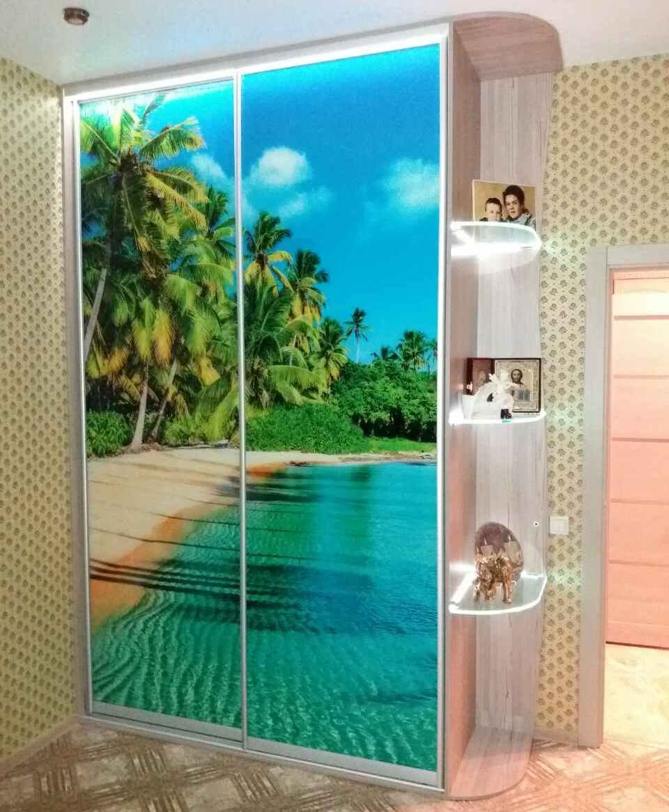 | Применение фотообоев | Их можно использовать, но желательно, чтобы заранее были куплены именно узкие варианты, которые можно наклеить на дверцы. |