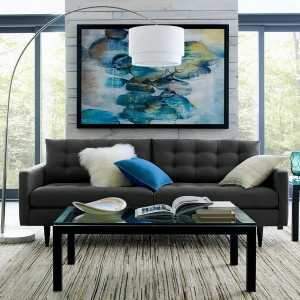 Не всегда диван — главное действующее лицо гостиной. Если вам нужно привлечь внимание к чему-то очень красивому, дорогому (во всех смыслах) или просто необычному, не давайте дивану переключить на себя внимание. Лучше выберите серую обивку — она не будет отвлекать от вашей картины, коллекции фотографий или роскошного ковра.