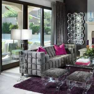 - Ар-деко. Дизайн комнаты в этом стиле с маленьким серым диваном отлично дополнят небольшие посеребренные либо позолоченные предметы.