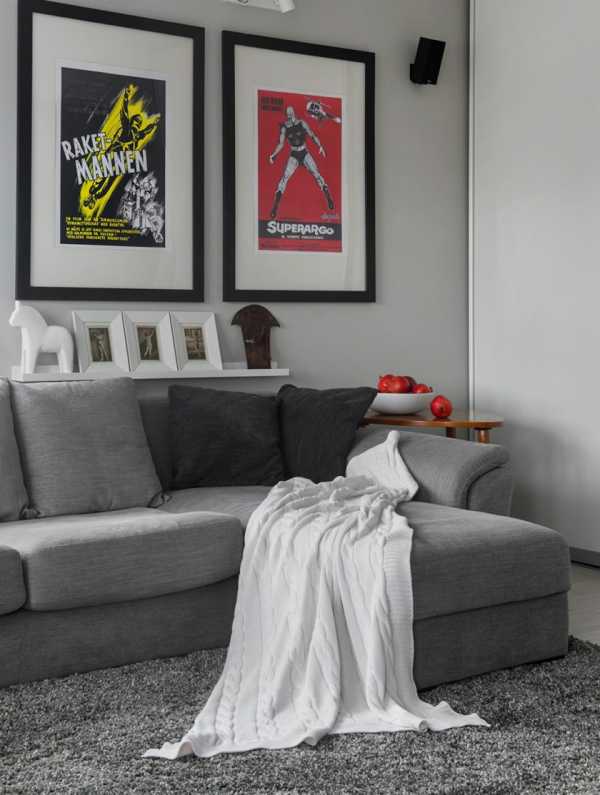 Для получения необходимого визуального эффекта в интерьере необходима цветовая гармония. Серый может доминировать, оттенять, объединять разные цвета. Интересным фоном для современного дивана пепельных оттенков могут стать черно-белые фотообои, чересчур сдержанный дизайн мебели скандинавского стиля сделают более мягким диванные подушки светлых оттенков натуральной шерсти. Здесь можно поиграть с фактурами: использовать искусственный мех, материалы «домотканого» переплетения. В последнее время модными стали изделия из трикотажа крупной вязки с рельефными узорами.