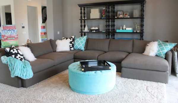 Серый диван в интерьере подойдет для тех, кто любит акцентировать внимание на деталях. Так, например жемчужный серый диван в интерьере прекрасно сочетается с лимонным, коралловым, бирюзовым оттенками.