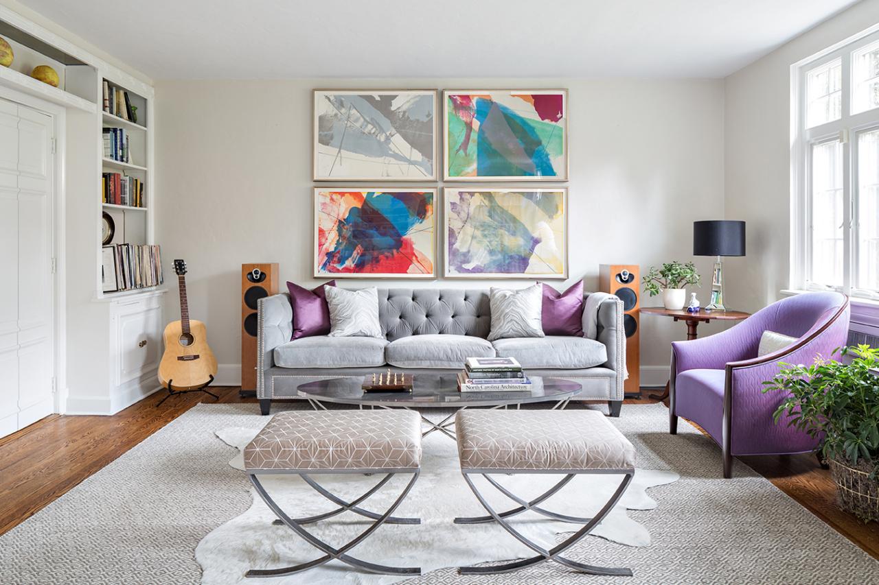 Здесь диван «уравновешивает» яркие контрастные цвета.
