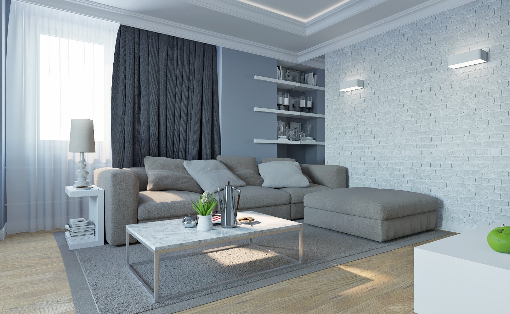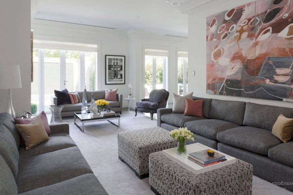 Удачные цветовые решения для интерьеров — серо-белая гостиная