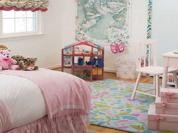 Детская, в которой одинаково уютно будут чувствовать себя и маленькая девочка и юная леди, должна быть насыщенна светлыми тонами и растительными орнаментами.