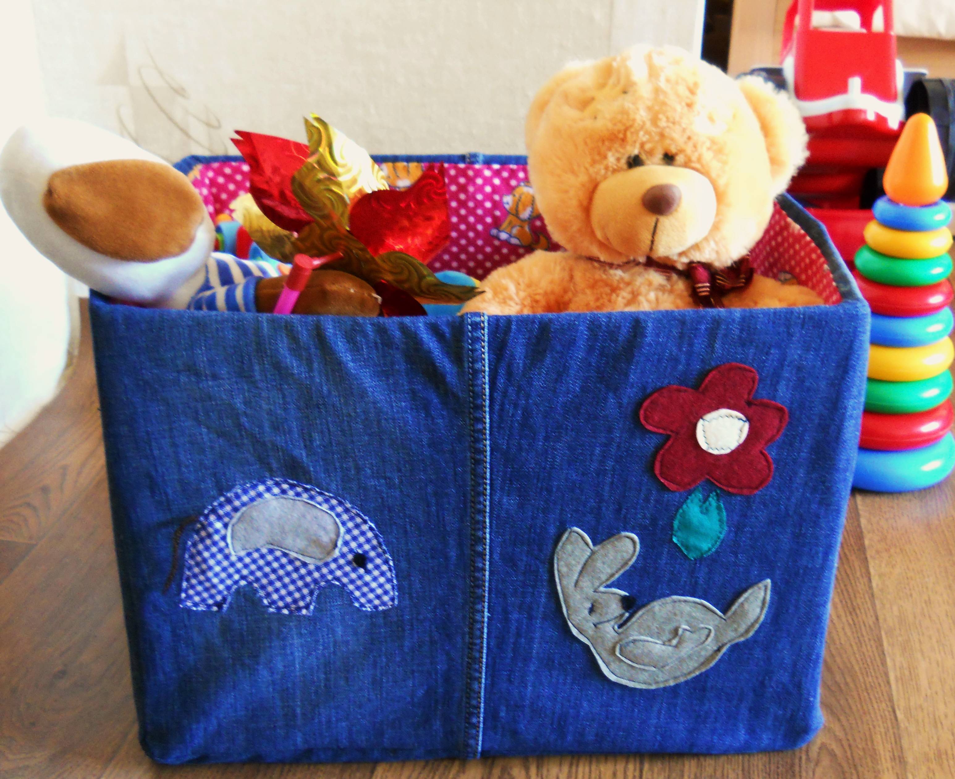 - Пришейте к лицевой стороне украшения (заранее отпоротые карманы, цветок из кружева, лоскутки тканей).