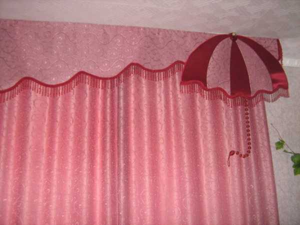 Когда все детали располагаются на одном месте. Их фиксируют между собой основной машинной строчкой. Нижний край ламбрекена можно дополнить декоративным шнуром. Красивые бусины дополнят самую простую модель.