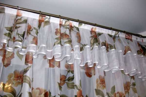 Далее все части сшивают между собой на портьерную ленту. На её обратной стороне имеются несколько отделов для крючков. Нижний срез ламбрекена обрабатывают декоративной тесьмой или косой бейкой. Это позволит добавить частичку роскоши в интерьерное пространство.