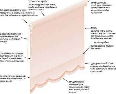 Дополнение к дверямРулонные изделия имеют несложную конструкцию, которую можно сделать самостоятельно. Подъемный механизм таких штор работает при помощи: