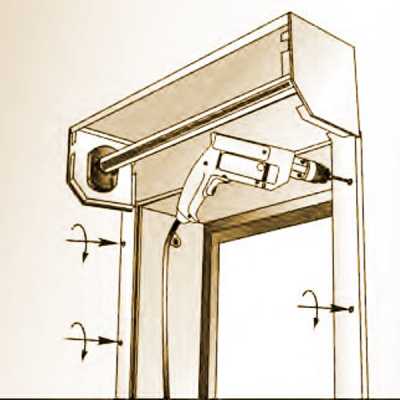 - В первую очередь крепятся направляющие к дверному откосу. Расположение их должно соответствовать размеру полотна, параллельно откосам проема.