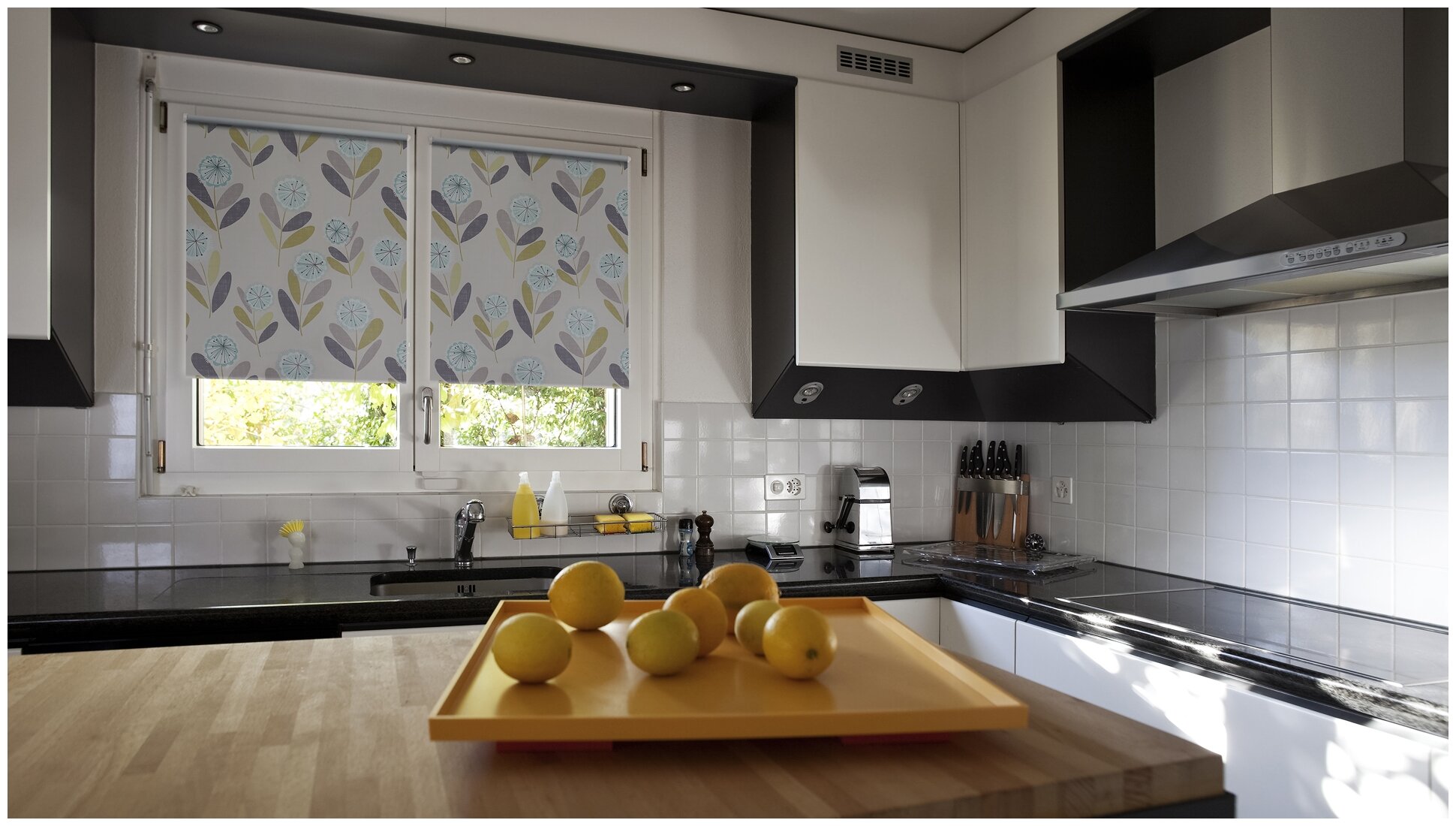 Если вы хотите добавить немного цвета и оживить свою обычную кухню, роллеты с шторами отлично подойдут.