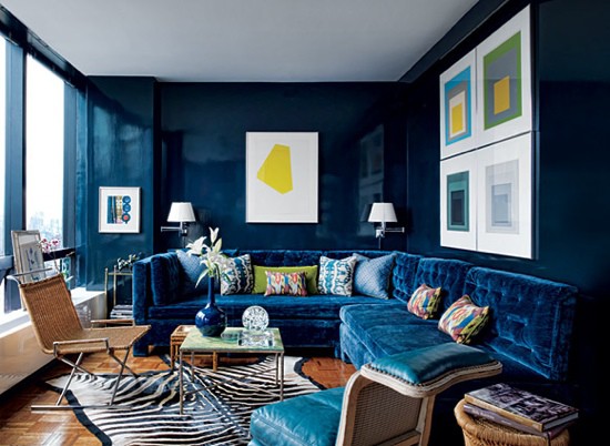 25 потрясающих гостиных с диванами из синего бархата