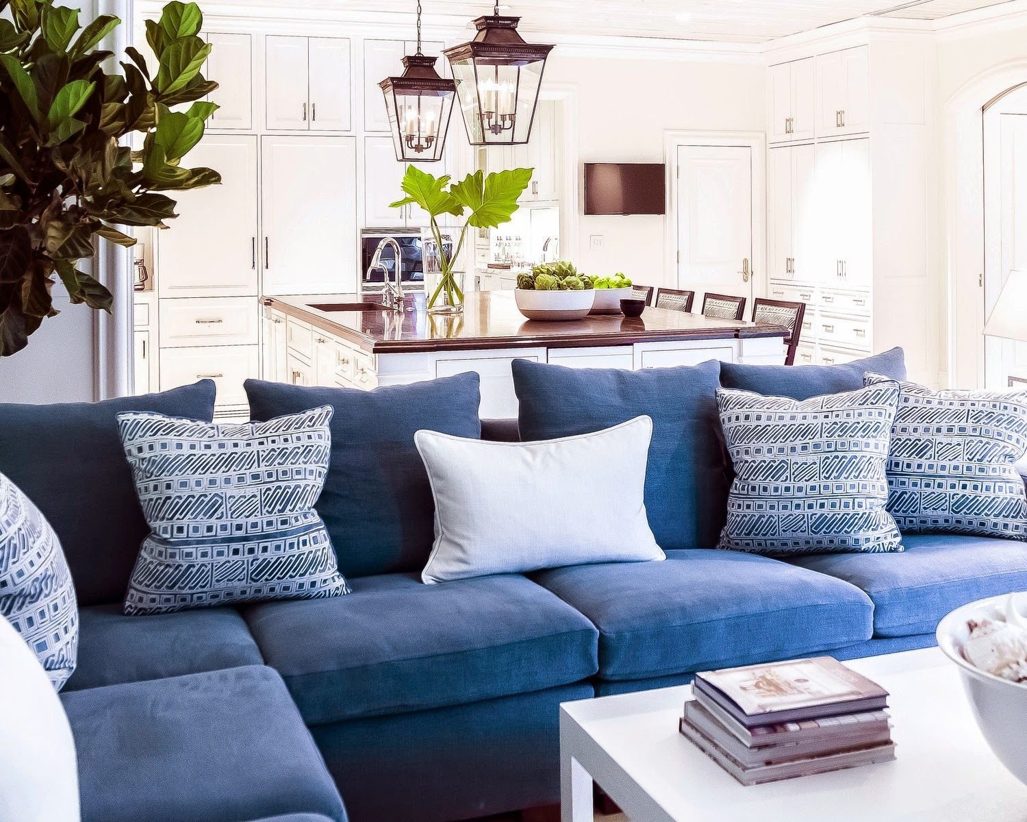 Забавный вариант синего дивана — синий прибрежный диван. Здесь узорчатый синий диван является идеальным дополнением к этому повседневному, непринужденному пространству. Морские тона идеально имитируют море и небо в этом пляжном домике. Узорчатые диваны отлично подходят для больших пространств, таких как этот, потому что они не выглядят занятыми в больших просторных помещениях с тоннами естественного света.Дизайн Саммер Торнтон Дизайн.