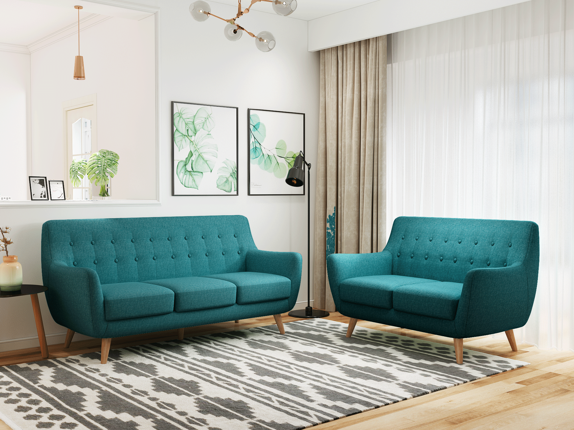 Какие шторы подойдут к синему дивану