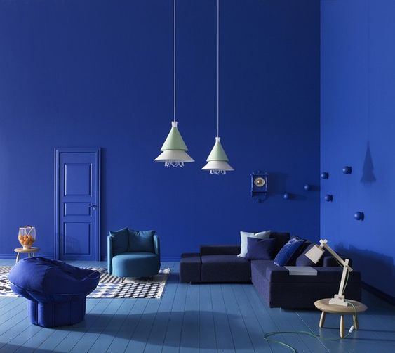 Если вы поклонник синего цвета и действительно любите этот цвет, вы можете использовать его для стен в каждой комнате в вашем доме. Выбор интересного цвета для вашего дома сделает его более интересным, как писал художник-фовист Рауль Дюфи: «Синий — единственный цвет, который сохраняет свой характер во всех его тонах… Он всегда будет синим».