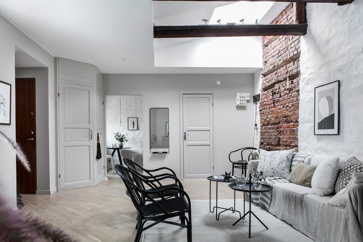 Элегантные шведские идеи для жизни в стиле лофт впечатляют открытыми балками и современным дизайном интерьера