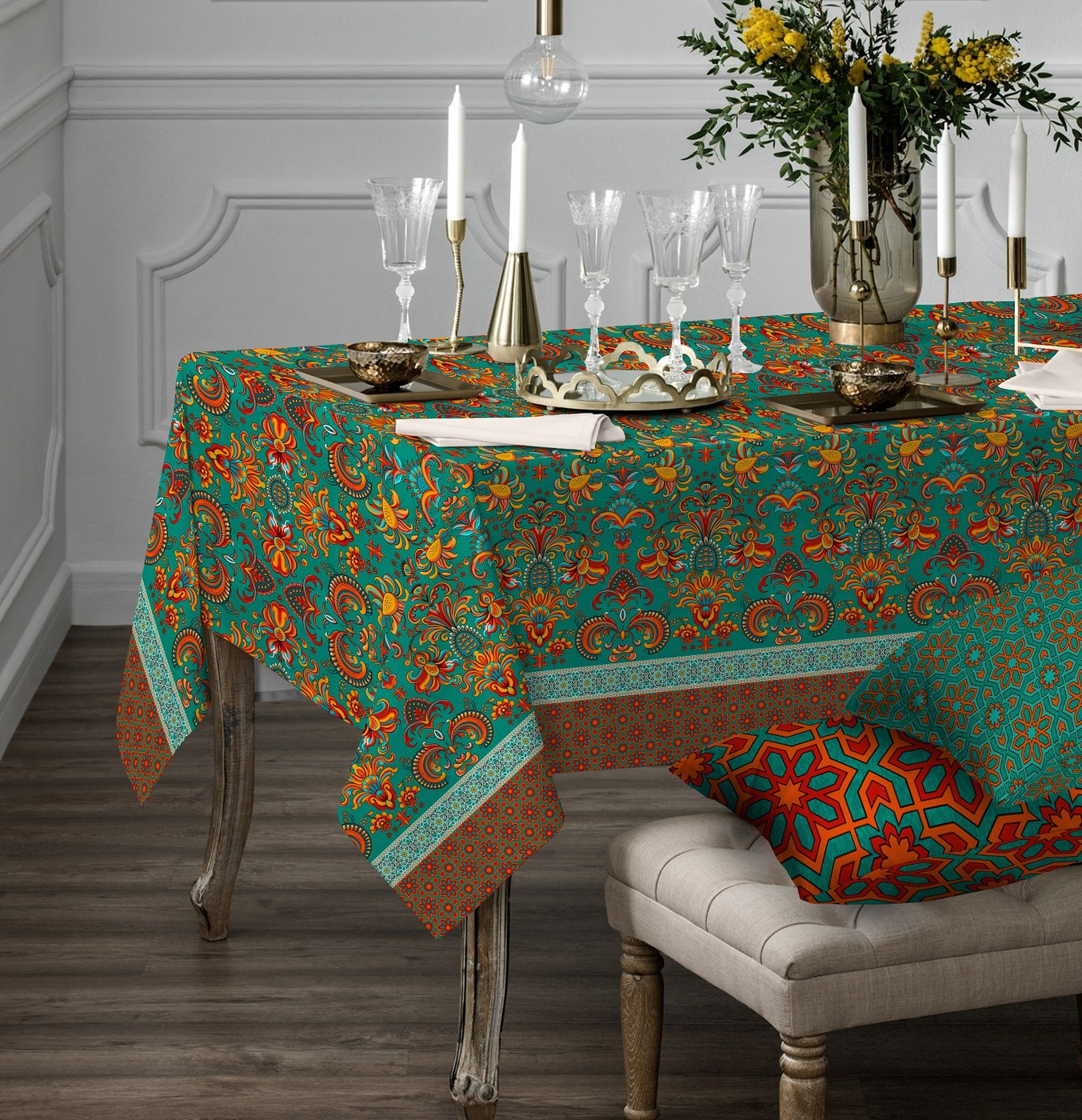 В такие моменты для сервировки стола хороши скатерти из натуральных материалов: хлопковые, льняные или шёлковые.