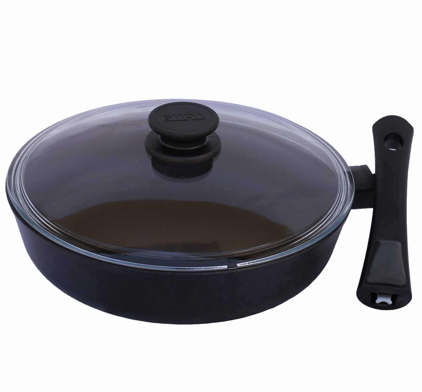 Конечно же если вас не смущает вес такой сковороды: со стеклянной крышкой — порядка полутора килограмм. Так что если вы маленькая, хрупкая и слабенькая женщина, этот вариант скорее всего не для вас. 🙂