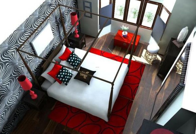 Красная, белая и черная спальня.