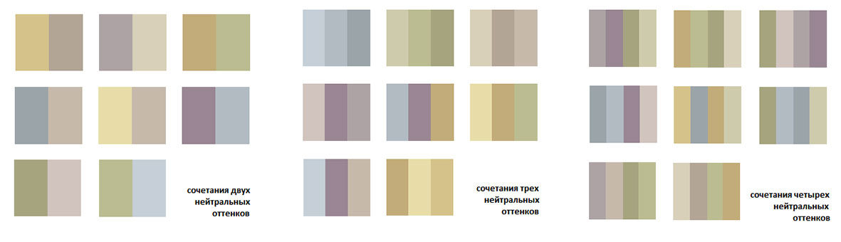 В отдельную категорию выглсят нейтральные цвета (черный, белый, серый, цвет слоновой кости, коричневый, бежевый). Они хорошо сочетаются как с другими цветами из круга, так и между собой. Используйте их как фон для других цветов (например, можно сделать стены нейтральных оттенков, но внести в интерьер цвет с помощью мебели, текстиля или ярких постеров) или добавьте аксессуары нейтральных тонов, чтобы немного «разбавить» основной цвет.
