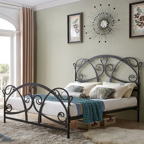 Прованс и кантриИзящные кованые элементы идеально вписываются в стилистику прованса и кантри. Эти стили приветствуют любые атрибуты старины. Для прованса выбирают мебель с высокой узорчатой спинкой, изножьем, изогнутыми ножками, каркасом для балдахина. Конструкция может быть украшена винтажными узорами, растительными орнаментами, листьями, веточками.