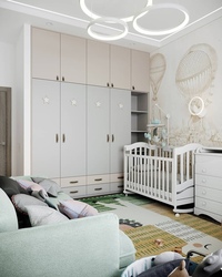 Спальные комнаты у многих людей и так оформлены такими цветами. Поэтому велика вероятность того, что с появлением ребенка не нужно будет ничего менять.