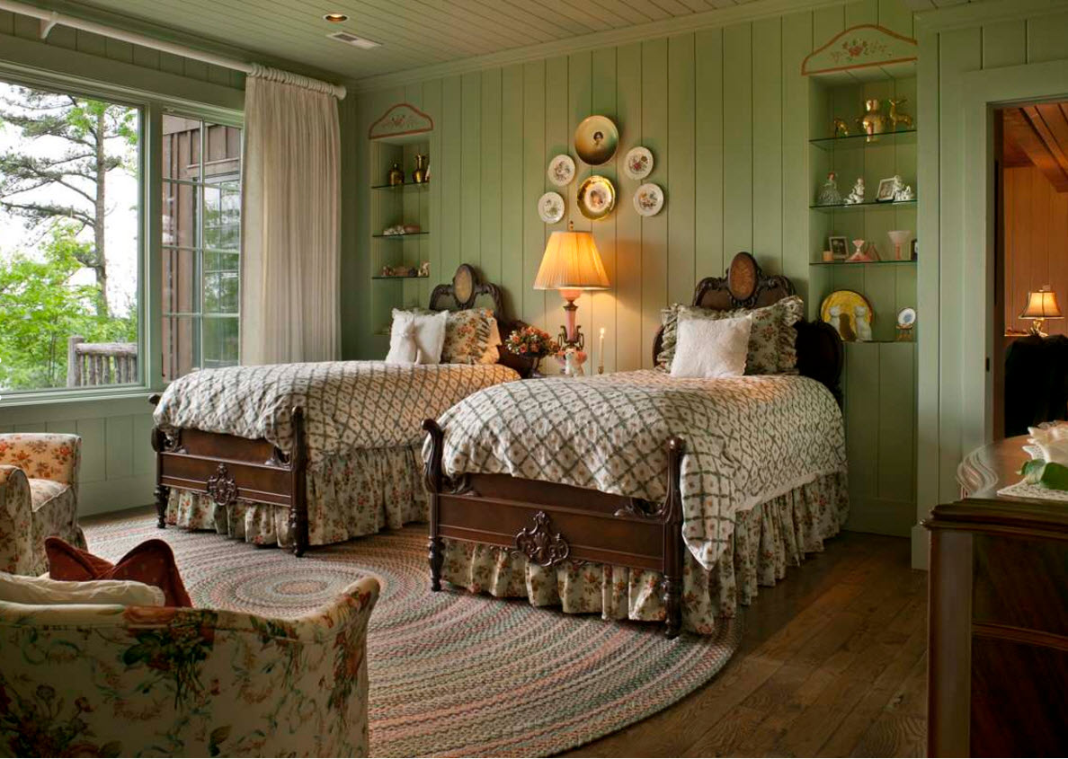 Английский деревенский стиль для оформления спальни подойдет тем, кто любит сдержанность и простоту в интерьере.Этот стиль предполагает использование экологически чистых, натуральных материалов, большого количества дерева, предметов декора. Важный элемент — камин. Он может стать центральным предметом интерьера, создать атмосферу уюта и комфорта.