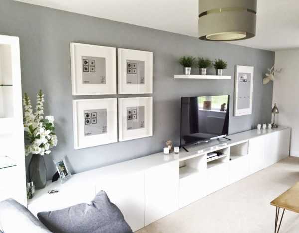 Модульная стенка с тумбами белоснежного цвета ИКЕА в гостинойЧитайте также: тумбы по ТВ в интерьере современных гостиных и как правильно разместить телевизор в гостиной.
