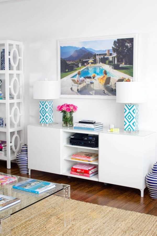 Низкий белый Каллакс в интерьере гостиной