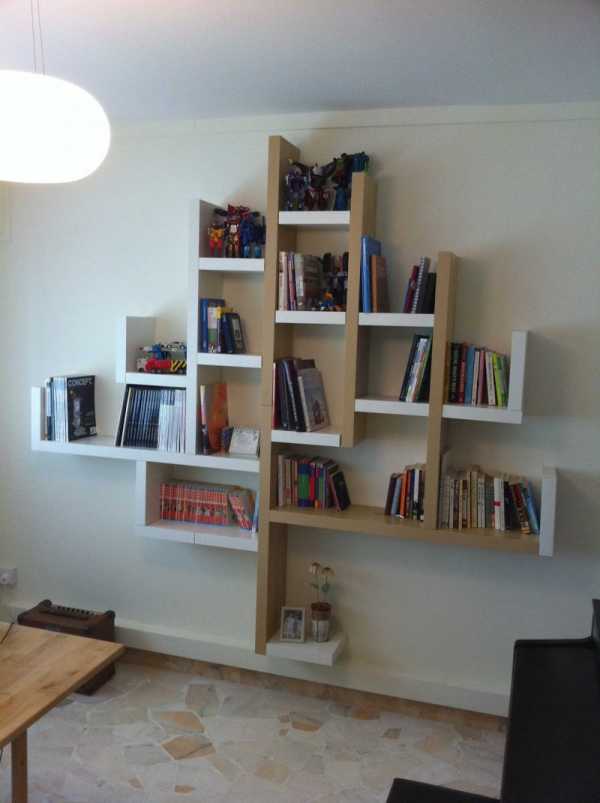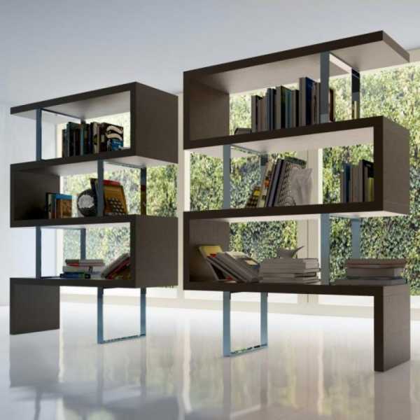 Среди них есть модели с разновысокими полками, которые имеют живописный вид и презентуют творческое начало владельца жилья.