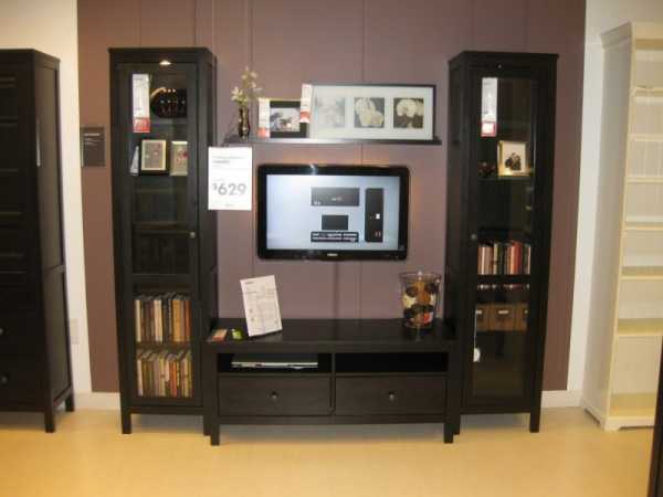 По желанию можно выбрать модель с колесиками, чтобы перемещать ее по комнате в случае необходимости. Наиболее популярные тумбы под телевизоры IKEA — Бесто, Хэмнес и Лакк.