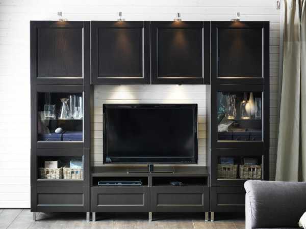 Модульная стенка Бесто с подсветкой ИКЕА в интерьере гостинойМебель «ИКЕА» в интерьере гостиной