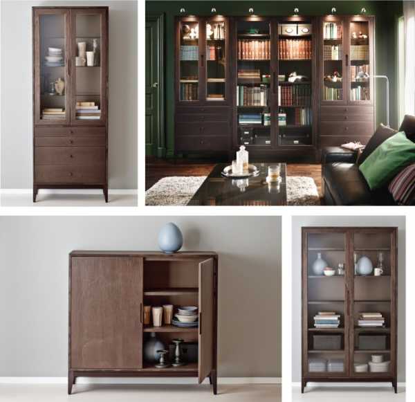 Это, пожалуй, самая большая коллекция для гостиной, в которой насчитывается 143 предмета. Изготавливается из ДСП или ЛДСП, покрытых лакированной пленкой. Стенка БЕСТО – это целая система хранения вещей. Из предметов здесь встречается: