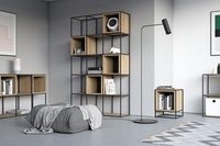Их внешний вид представляет собой связку полок и их перегородок. В этих моделях отсутствуют боковые и задние стенки. В стеллажах-решетках переплетены горизонтальные, вертикальные и диагональные элементы. Этот стеллаж можно установить на пол в гостиной или подвесить к стене. Такая модель гармонично смотрится в современных интерьерах гостиных.