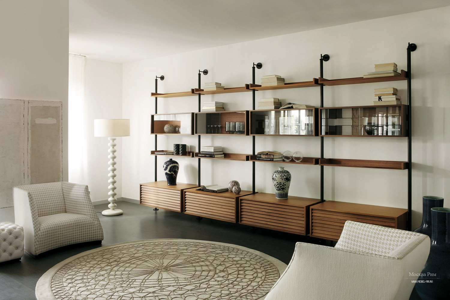 Такие стеллажи можно установить в интерьер любой гостиной.