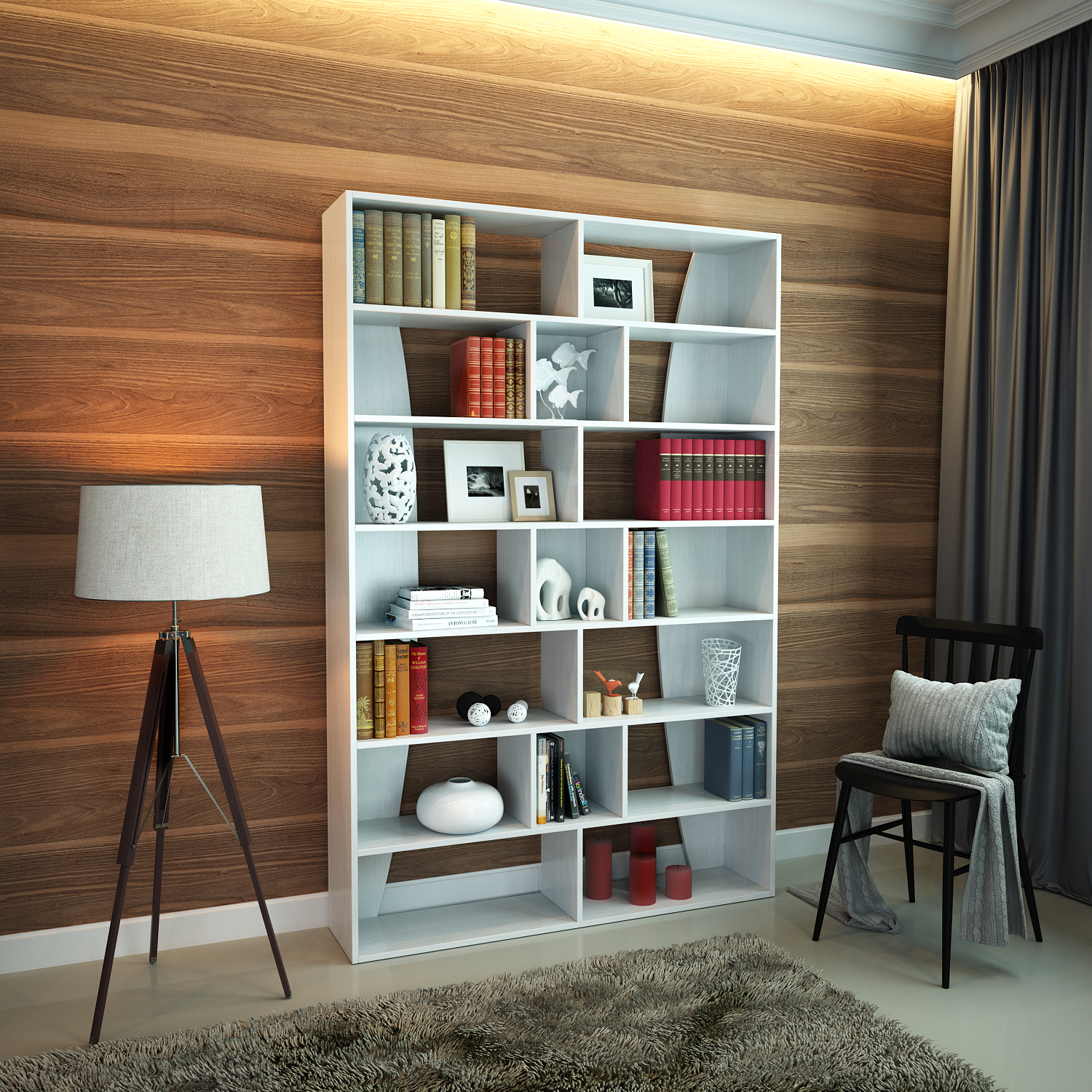 Их внешний вид представляет собой связку полок и их перегородок. В этих моделях отсутствуют боковые и задние стенки. В стеллажах-решетках переплетены горизонтальные, вертикальные и диагональные элементы. Этот стеллаж можно установить на пол в гостиной или подвесить к стене. Такая модель гармонично смотрится в современных интерьерах гостиных. - Ассиметричные стеллажи. Оригинальность этих моделей достигается за счет ступенчатого расположения перегородок и полок. Ультрамодные и современные модели имеют зигзагообразные, криволинейные и округлые элементы. Такой стеллаж можно заказать по индивидуальному проекту. В этом случае вы получите уникальный и неповторимый предмет мебели для украшения интерьера гостиной. Но будьте осторожны, такие ассиметричные стеллажи нельзя устанавливать в помещении классического стиля.