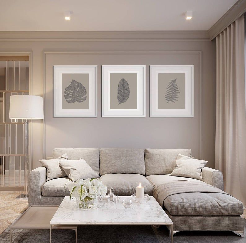 На фото триптих из постеров на стене в гостиной