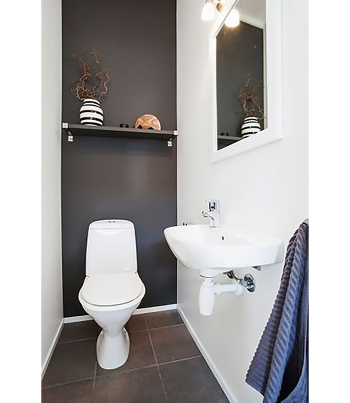 к содержанию ↑Если вы хотите сыграть на контрасте, то нужно помнить, что темные стены являются менее приемлемыми для туалета, так как на них капли воды будут заметны больше.
