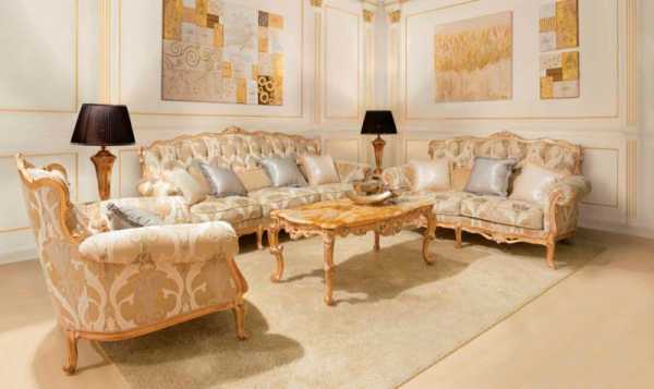 Совет! Для усиления эффекта блеска позолоченной мебели выбирайте глянцевые поверхности пола.
