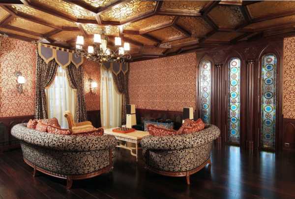 И стены и полы комнат обязательно должны соответствовать дорогой и красивой обстановке. Зачастую их украшают фресками и лепниной, а в отделке стен используют панели из красного дерева.
