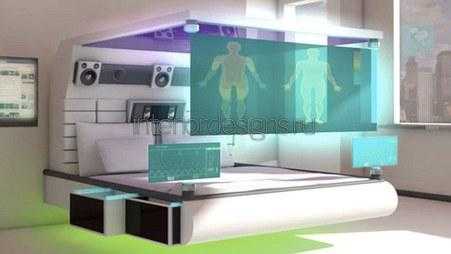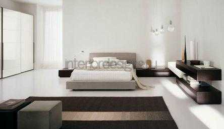 Мебель. Ультрасовременная спальня отличается обилием свободного пространства. По этой причине, мебели должно быть минимум: кровать, прикроватные тумбочки и незаметный шкаф-купе (возможно, комод). Кровать может иметь самую причудливую конструкцию, где вместо ножек выступают полозья; либо же они и вовсе отсутствуют (как в случае с кроватью-платформой), а каркас изготовлен из пластика, дерева или других современных материалов. Изголовье такого ложа обычно имеет несколько уровней регулировки.