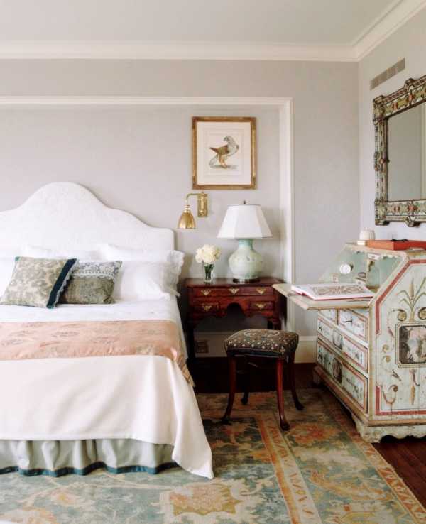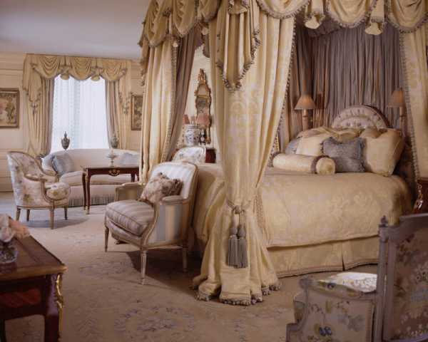 Мебель. В аристократической опочивальне довольно много мебели. Это тумбы, тахта, туалетный столик, пуфики, платьевой шкаф, кресло, бюро. Но центральным элементом в ней является кровать. Она должна быть большой, иметь массивное изголовье и быть украшенной разнообразным текстилем (одеяла, пледы, подушки).