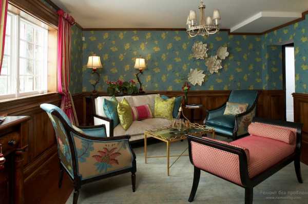 Выбор отделки стены для данного стиля велик и зависит скорее от желаемого общего впечатления, главное — отсутствие однотипности и присутствие различных вставок, бордюров, даже архитектурного декора