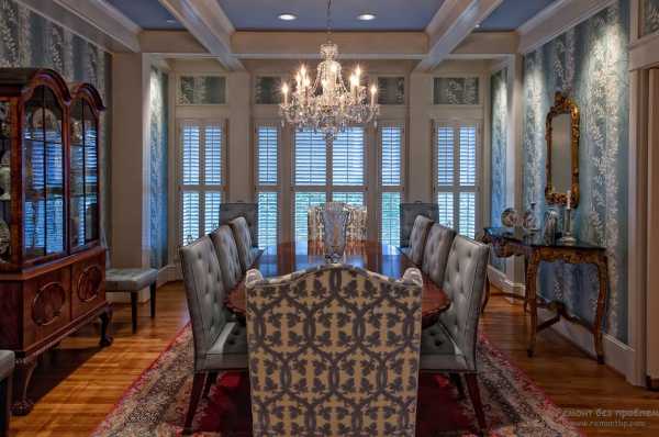 Для создания роскошной обстановки обязательным моментом является эффектное освещение. Сверкающие настенные светильники, красивые торшеры с резными ножками и огромные, переливающиеся люстры из хрусталя успешно подчеркивают изыск и богатство дома.