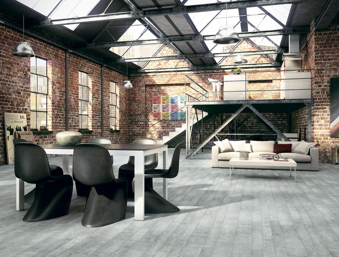 К сведению! Фактура отделки в интерьере лофт представляет собой комбинацию современных материалов – стали и стекла, с традиционным кирпичом, грубыми досками и балками. Напольное покрытие может быть дощатым.