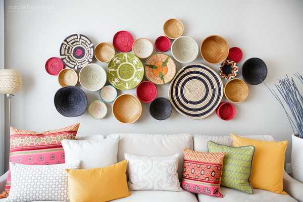 - Посуда. Массивные яркие керамические тарелки, миски, блюда, пиалы, чайники ручной работы станут настоящей жемчужиной на кухне, выполняя не только утилитарную функцию, но и внося свежие краски. Посуда может быть глазурованная или цвета обожженной глины, а также стеклянная.
