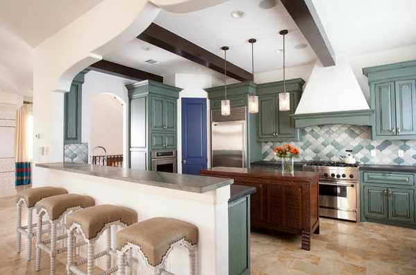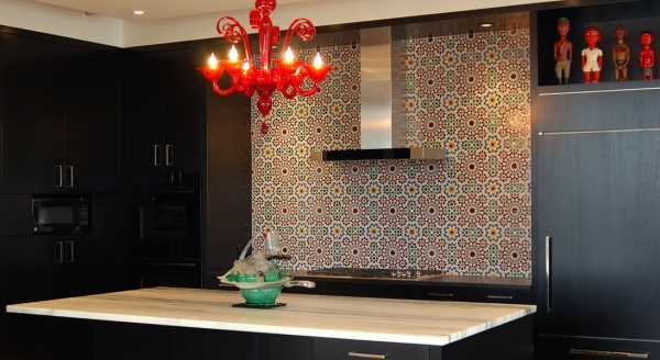 Однако стоит внимательно посмотреть фото: кухня в марокканском стиле обязательно имеет хотя бы небольшой уголок, выложенный керамической плиткой с узором-арабеской.