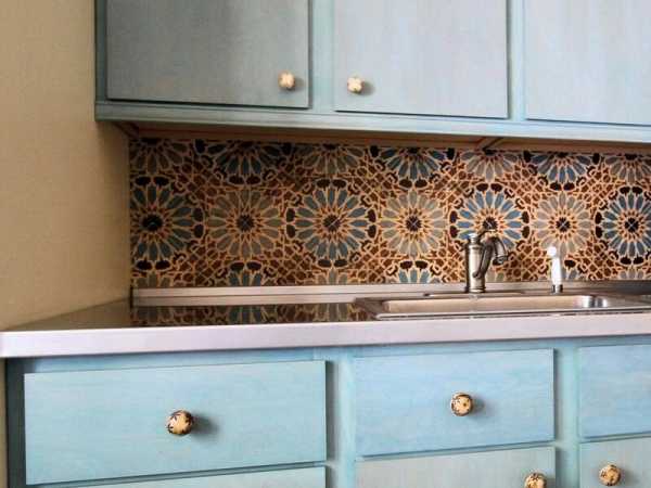 Затейливой плиткой можно декорировать любые элементы кухонного пространства: